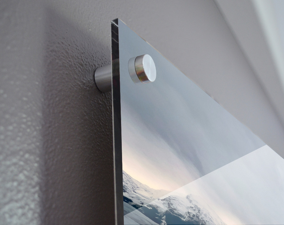 Impression sur acrylique avec entretoises ( cylindres métalliques )